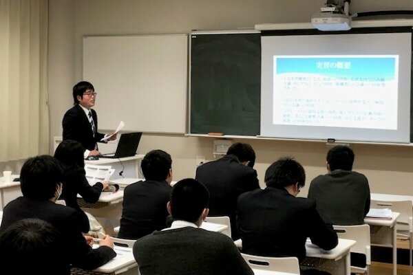 実習報告を行った大江君(公共政策学科3年 近江高校出身)からは、彦根市内の病院にて行った医療ソーシャルワーク実習の目標、成果、今後の課題などについての報告がなされました。